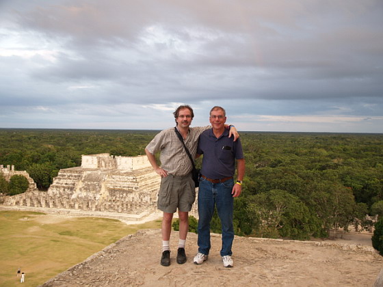 With dad on one of the Mayan Pyramids at "Chicken Pizza"